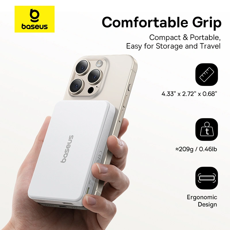 Stay powered wherever you go with the Baseus Airpow II Qi2 Magnetic Power Bank. Combining strong magnetic attachment, versatile fast charging, and a sleek compact design, it delivers dependable energy for your devices in a lightweight, travel-ready form.